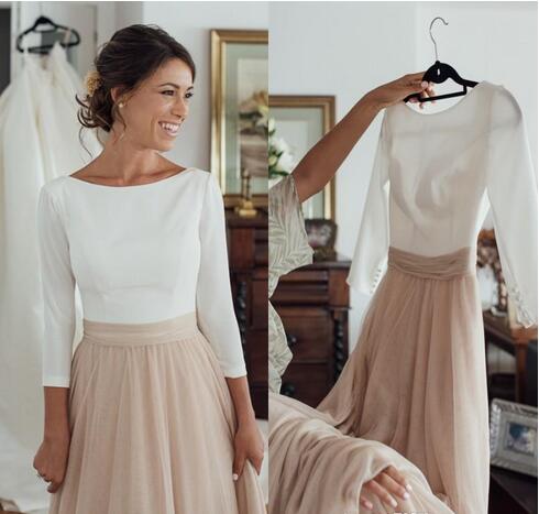 Elegant Country Champagne Wedding Dress Bateau Neck Sleeveless Backless Cheap Bridal Gowns Custom Made with Sleeves