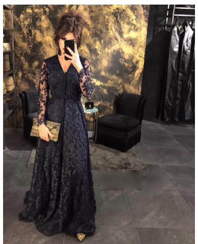 Black Lace Moroccan Kaftan Evening Dresses Long Sleeves Muslim Arabic Dubai Prom Gowns Dress Custom Made