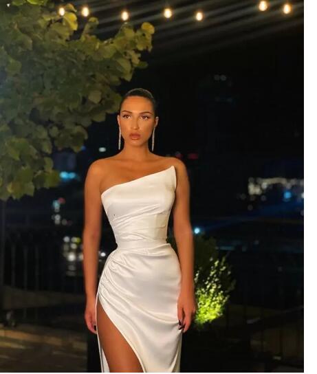 Sexy Prom Dresses with High Split Satin Evening Gowns for Party Formal Dress ourt Train Evening Gowns