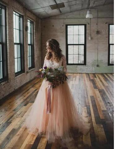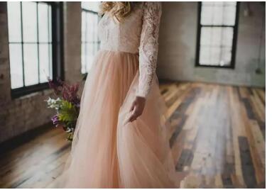 Blush Pink White Wedding Dresses Bridal Gown V Neck Covered Buttons Long Sleeves Tulle Lace Country Garden vestidos de novia Plus Size Custom Made