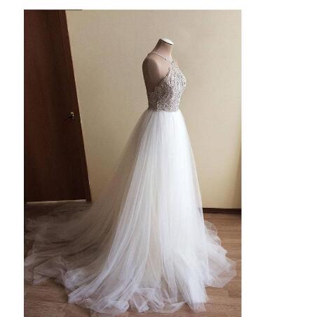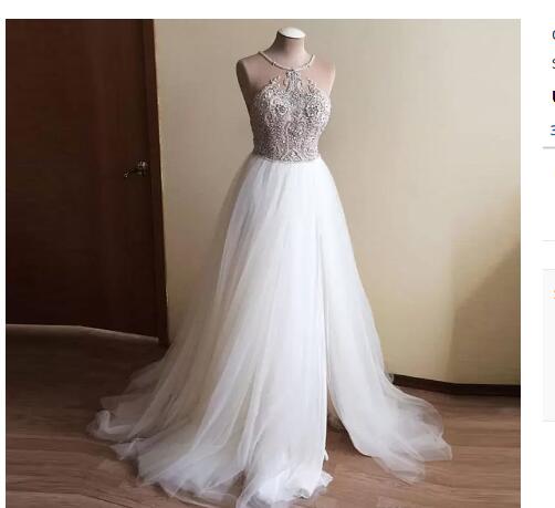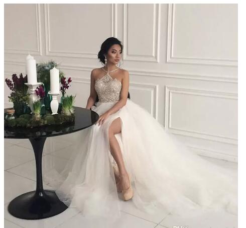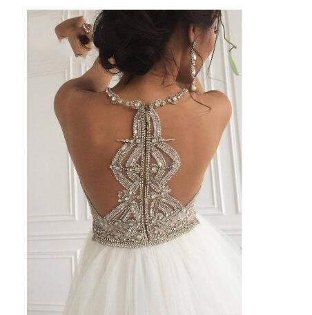 Beach Sleeveless Crystal Beaded Wedding Dresses Brial Gowns