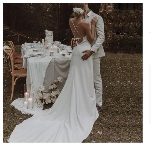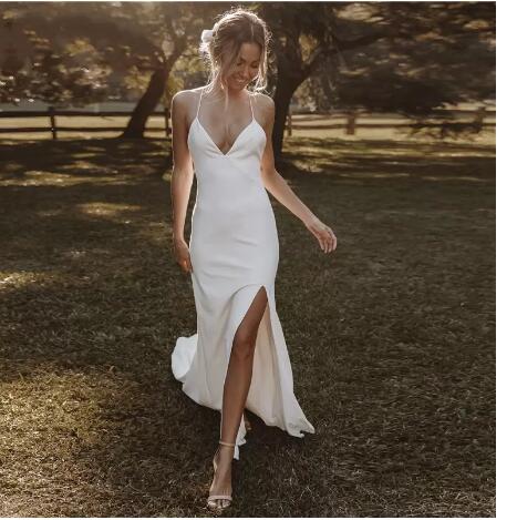 Beach Wedding Dresses Mermaid Boho Spaghetti Straps Slit Bridal Gown Satin Corset Back Bohemian Vestido De Noiva