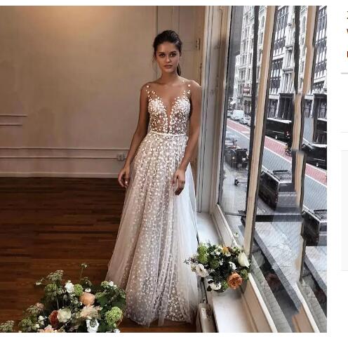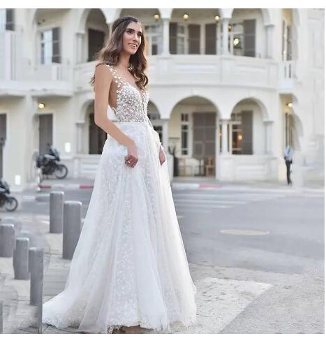Beach Bohemian A Line Lace Wedding Dresses Bridal Gowns