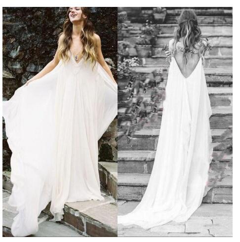 Simple Beach Chiffon Bohemian Wedding Dresses Cheap Sexy Backless Boho Bridal Dresses Plus Size