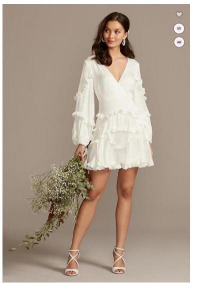 Little White Dress Charmeuse Ruffle Beach Short Wedding Dresses with Back Tie Long Sleeve Bohemian Country Bridal Gowns