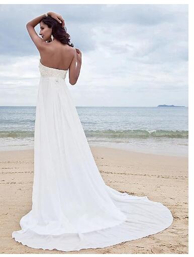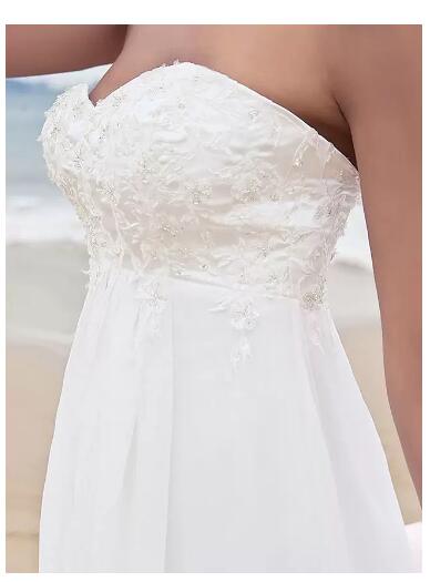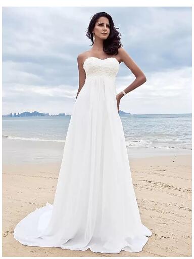 A-Line Wedding Dress Bride Gowns Sweetheart Court Train Chiffon Strapless Simple Beach Plus Size with Beading Vestido De Noiva Robe Mariage