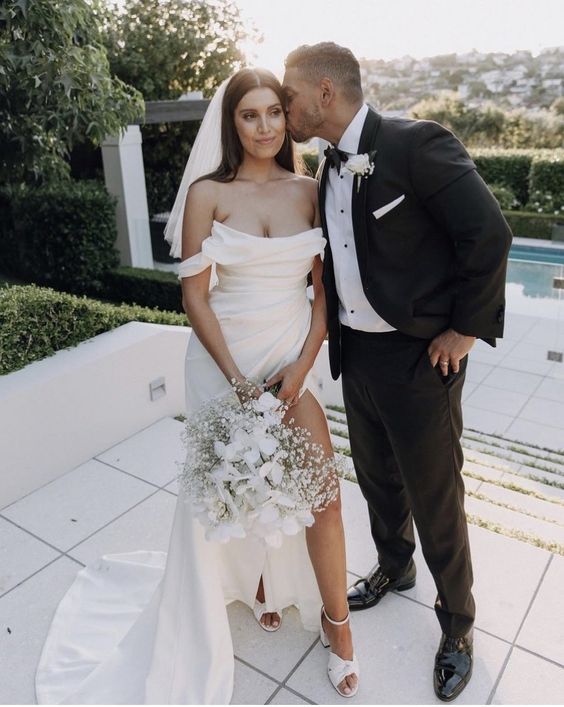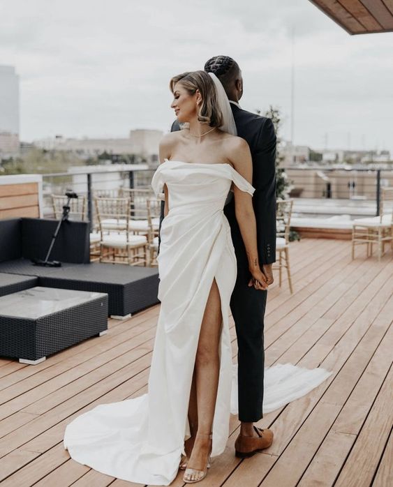 Simple Mermaid Wedding Dress Off the Shoulder Beach Boho Bridal Gowns