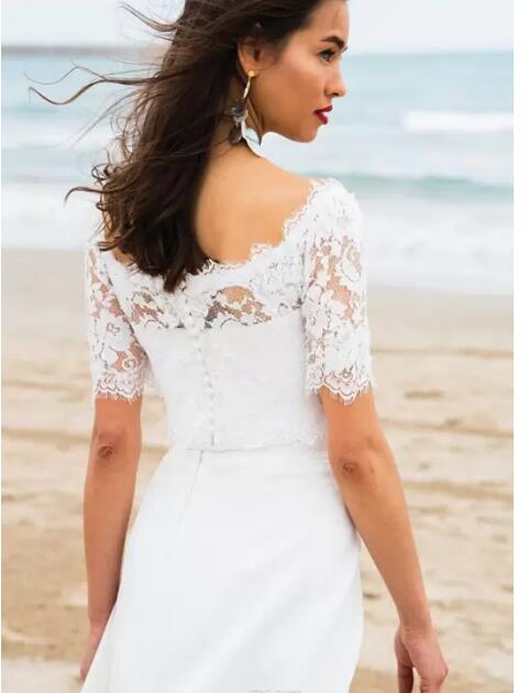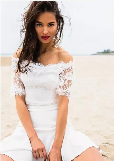 Beach Wedding Dresses Two Pieces Lace Top Buttons Back Vestidos De Festa High Low A Line Short Bridal Gowns