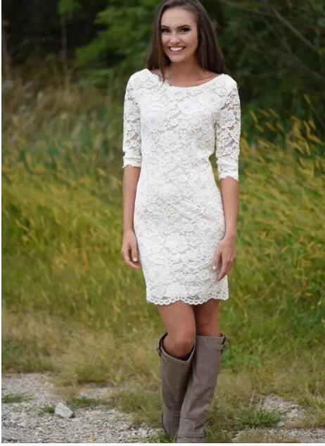 Summer Lace Short Wedding Dresses Scoop Neck Half Sleeves Zipper Back Bridal Gowns