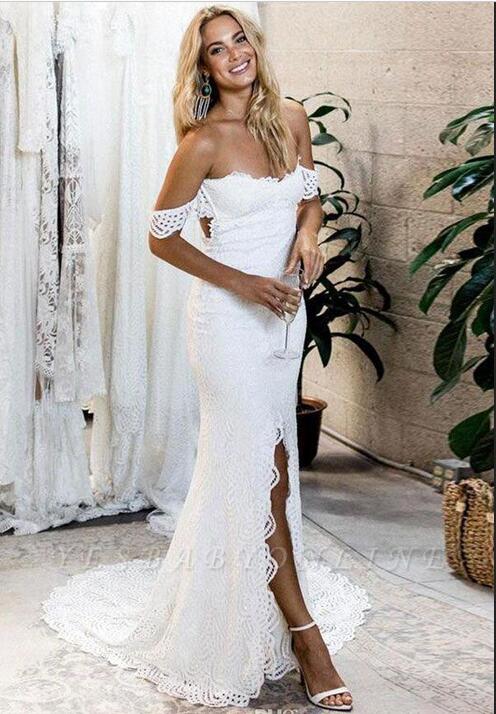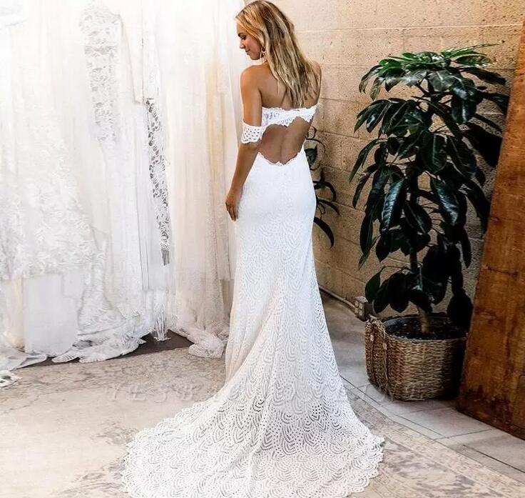 Bohemian Short Sleeve Lace Mermaid Wedding Dresses Sweetheart Floor Long Split Elegant Country Boho Wedding Dress Bridal Gown