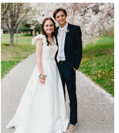Simple White A-Line Stain Wedding Dresses Bridal Gowns