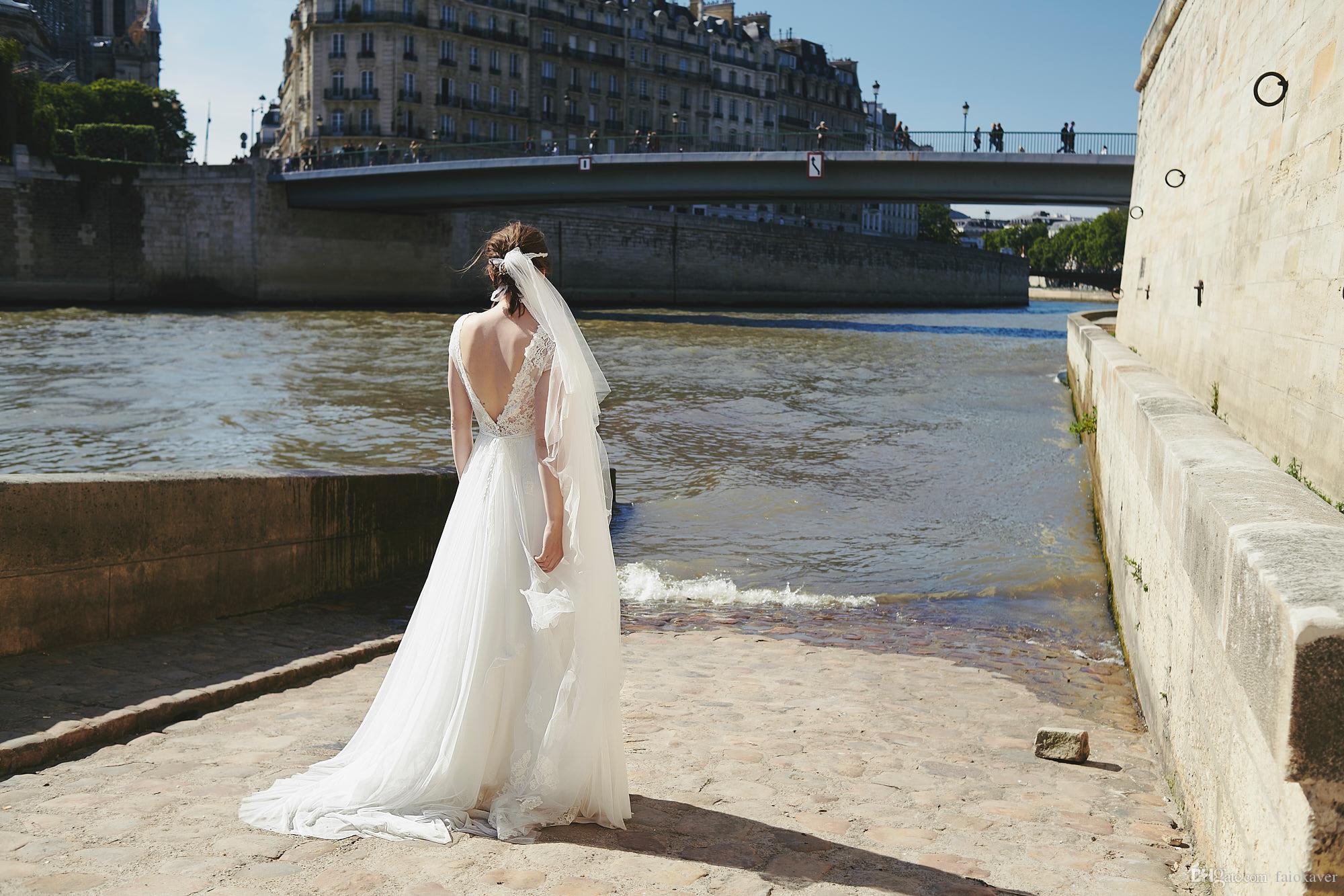 Beach Wedding Dresses Boho A Line Appliqued V Neck Short Sleeves Robes De Mariée Country Bridal Gowns Bohemian Wedding Dress