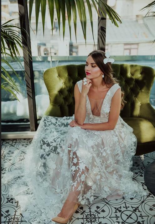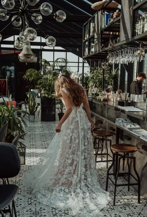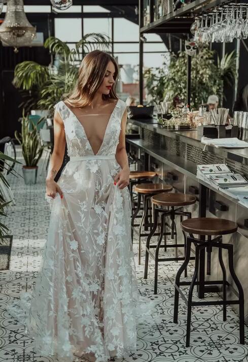 Bohemian Beach Wedding Dresses V Neck Flower Lace Appliques Backless Plus Size Bridal Gowns Country Boho