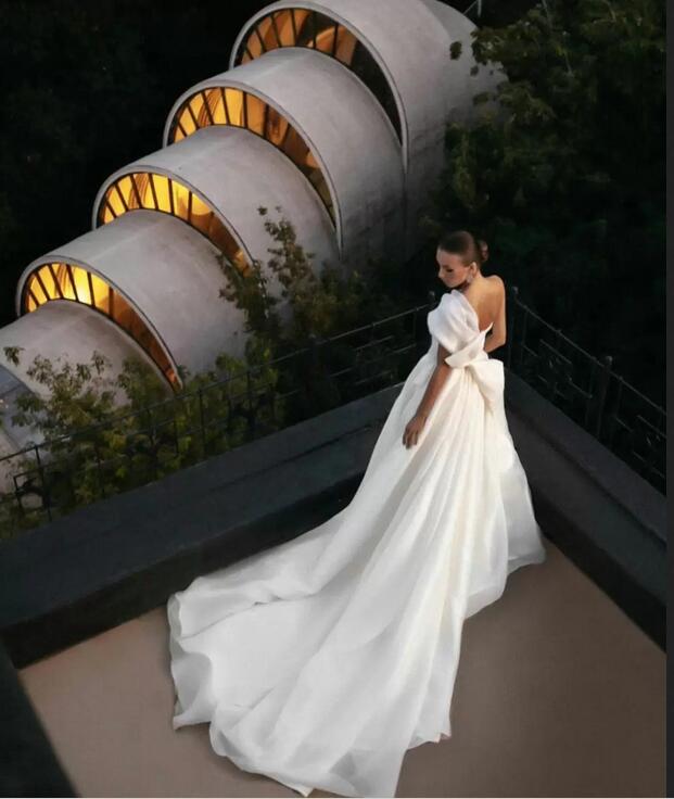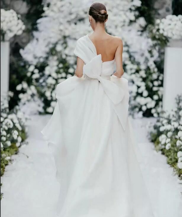 Elegant A Line Wedding Dresses Sexy One Shoulder Chiffon Beach Bridal Gowns Robe de Mariee Short Sleeve Side Split Country Wedding Dress Gown