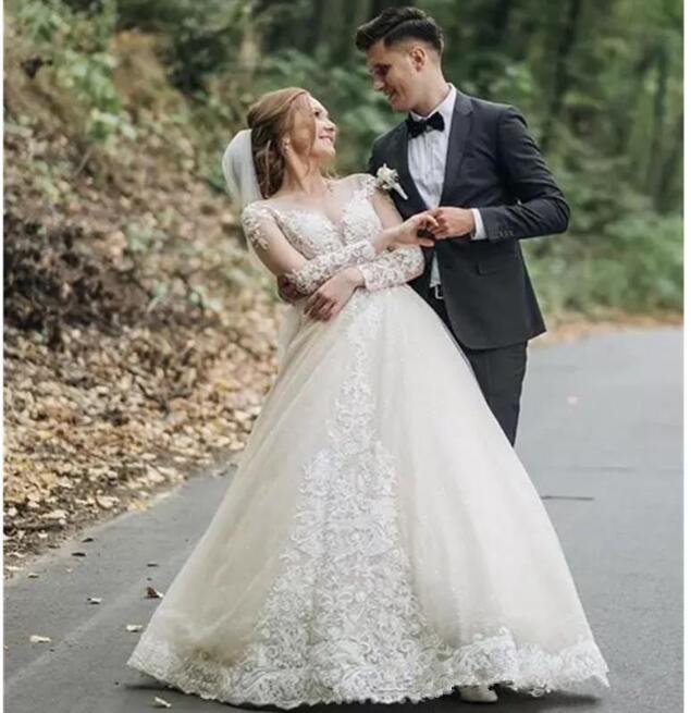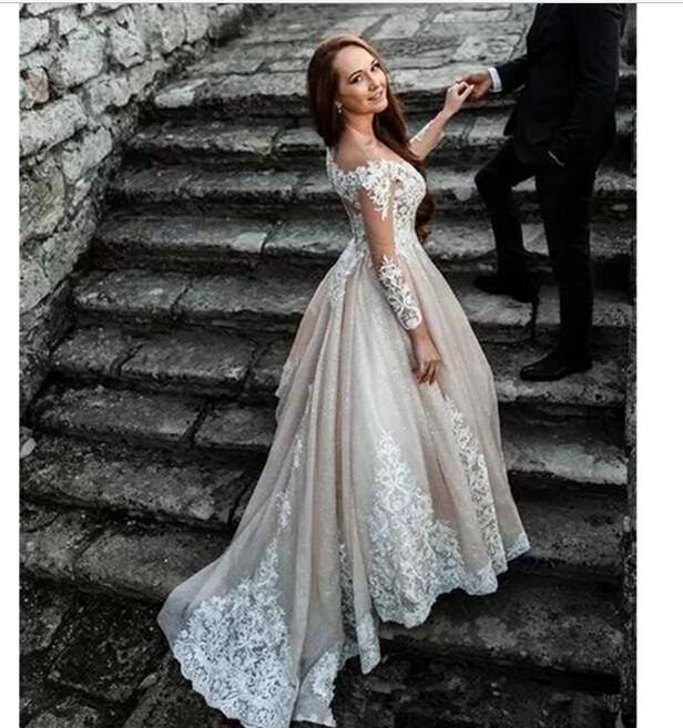 Sheer Long Sleeve Wedding Dresses Bridal Gowns