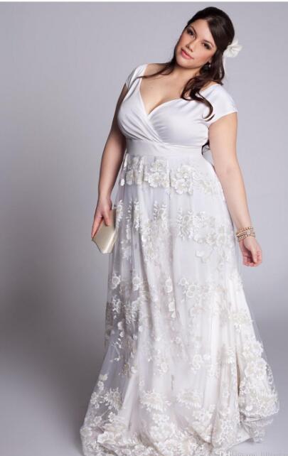 Plus Size A Line Lace Wedding Dresses V Neck Bridal robe de soiree Lady Formal Party Dresses Wedding Gown Lace Skirt