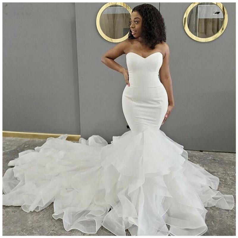 Sweetheart Organza Mermaid Wedding Dresses satin Ruffles Plus Size Bridal Gowns robe de mariée