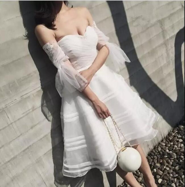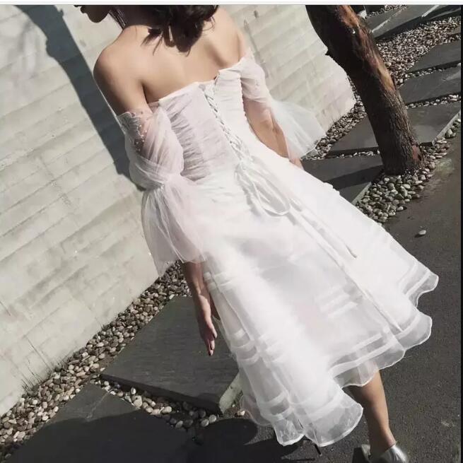 Ball Gown Boat Neck Custom Made Vestidos De Novia short Bridal wear