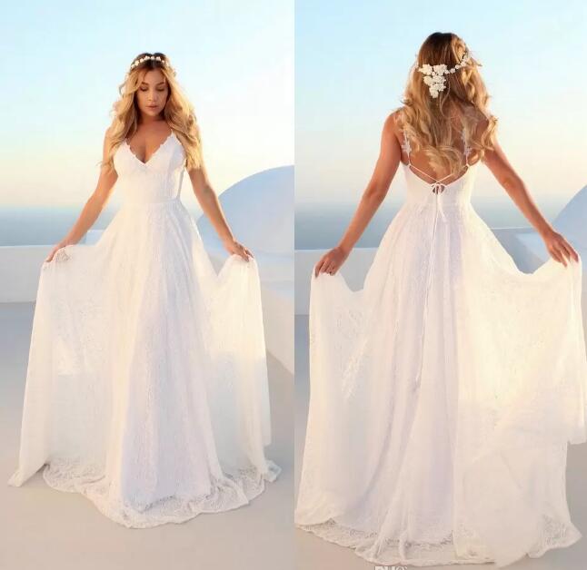 Elegant Boho Women Straps Long Wedding Dresses Wedding Gown V Neck Lace Bohemian Slim Fit Party Sexy Bride Dress