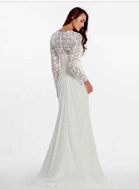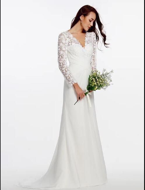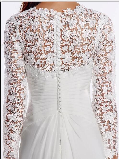 Bridal Gown V Neck Sweep Train Chiffon Floral Lace Long Illusion Sleeve Romantic Boho Plus Size Vestido De Noiva Robe Mariage