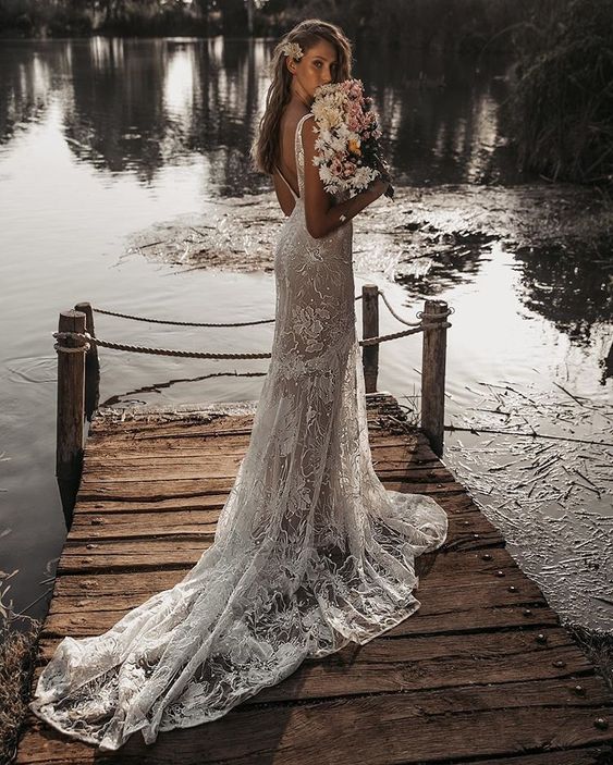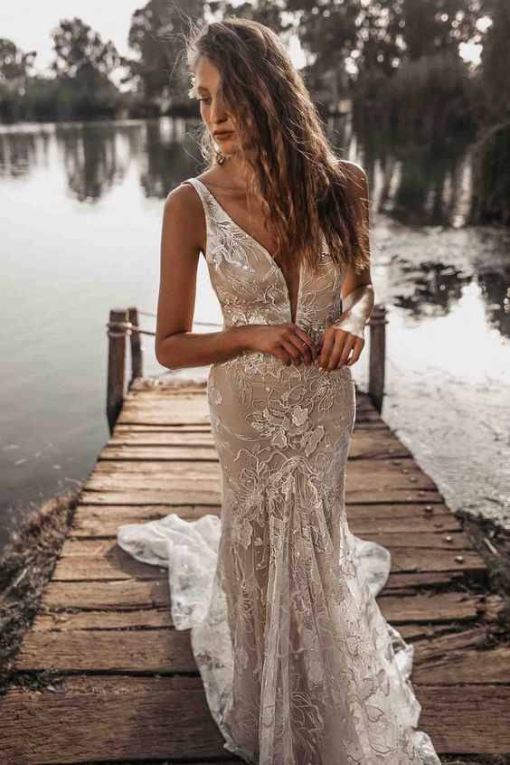 3D Floral Appliqued Wedding Dresses Mermaid Bridal Gowns