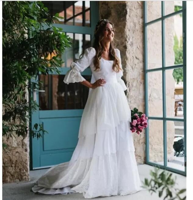 Lace 3/4 Long Sleeves Princess Wedding Dresses Plus Size Country Vintage Bridal Dresses vestido de novia