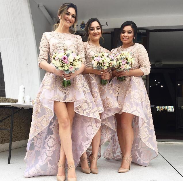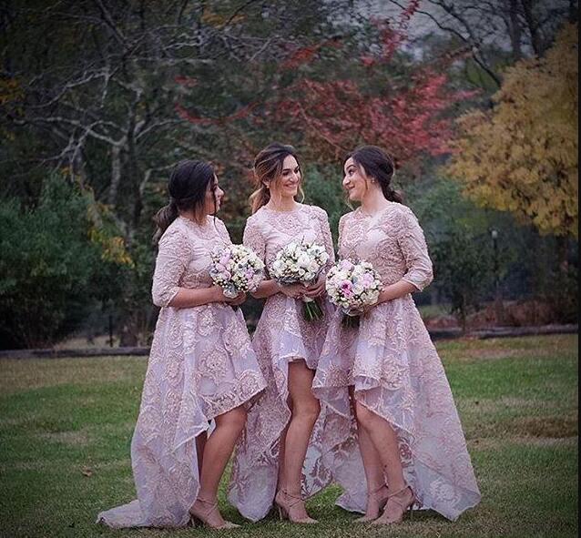 Jewel Neck Country Boho Wedding Guest Bridesmaid Dresses Plus Size Lace 2020 High Low Half Sleeve Maid Of Honor Gowns Formal Dress