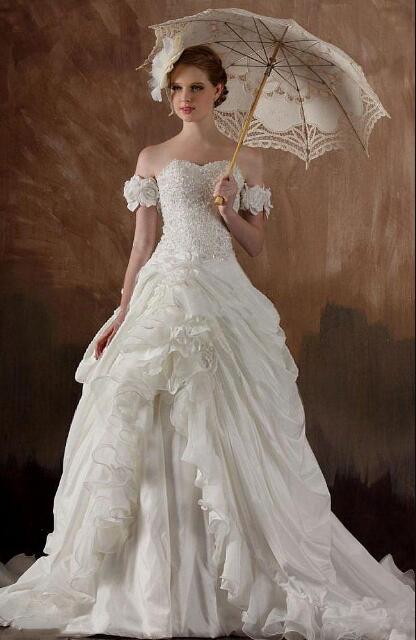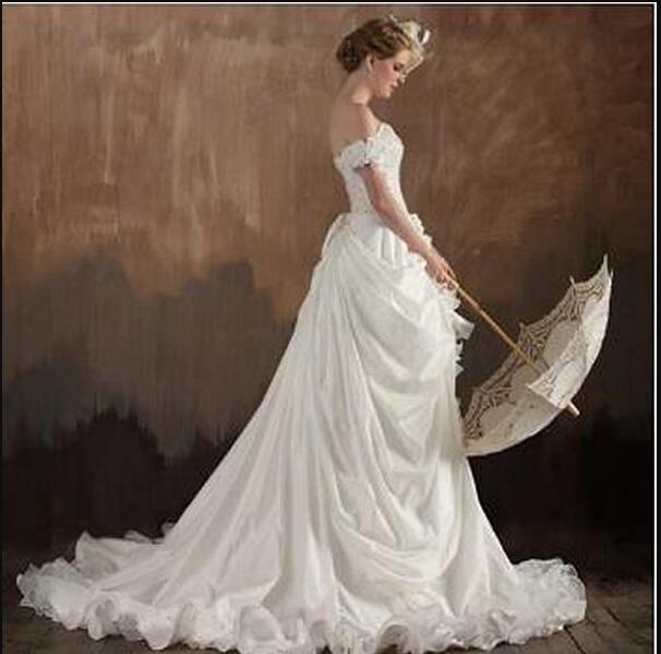 Vintage Gothic Wedding Dress Handmade Flowers And Ruffles Bridal Gowns Ivory Sweetheart Long Princess A Line Wedding Dresses