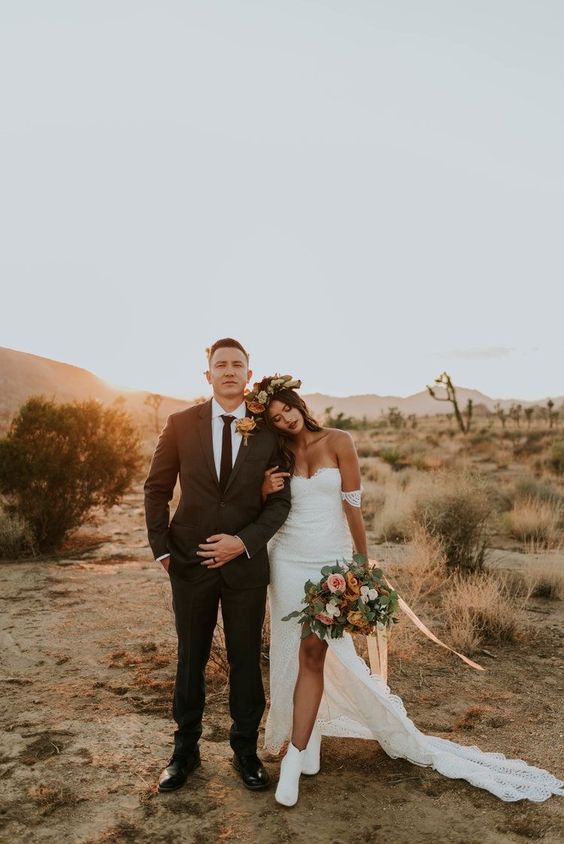Simple Beach Boho Sheath Lace Off the Shoulder Wedding Dresses Bridal Gowns