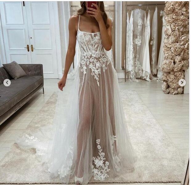 Sexy A Line Tulle Lace Appliques Wedding Dresses Bridal Gowns