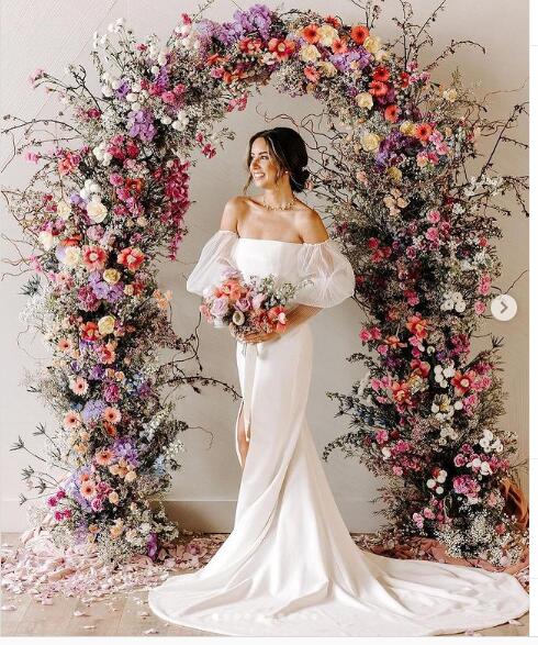 Simple Sheath Off the Shoulder Beach Boho Side Slit Wedding Dresses Bridal Gowns