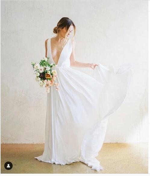 Simple V Neck Beach Boho Wedding Dresses Bridal Gowns