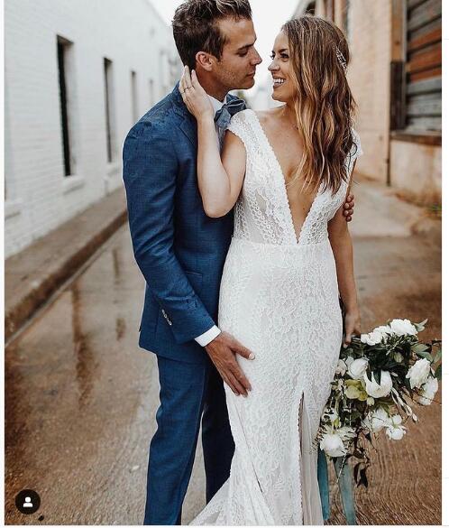 Simple Mermaid Lace Beach Boho Wedding Dresses Bridal Gowns