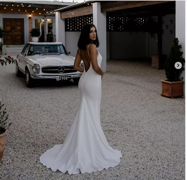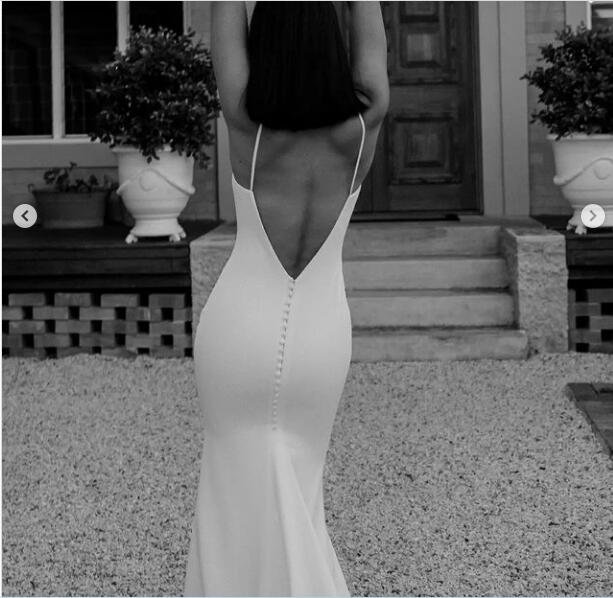 Simple Mermaid Backless Beach Boho Wedding Dresses Bridal Gowns
