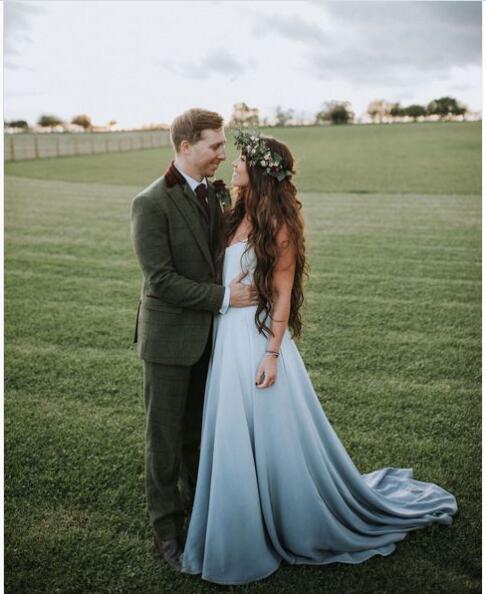 Ombre A Line Chiffon Dyed Blue Wedding Dresses Bridal Gowns