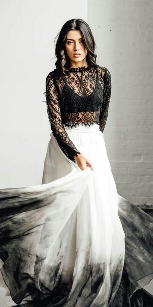 Two Pieces Lace Dyed Black Wedding Dresses Bridal Gowns