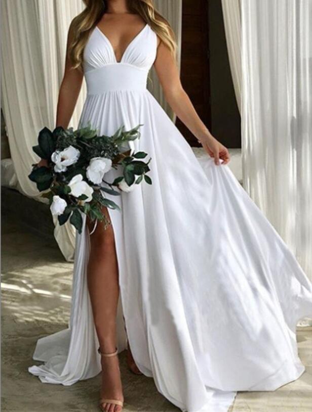 Simple A Line Wedding Dresses Bridal Gowns Side Slit