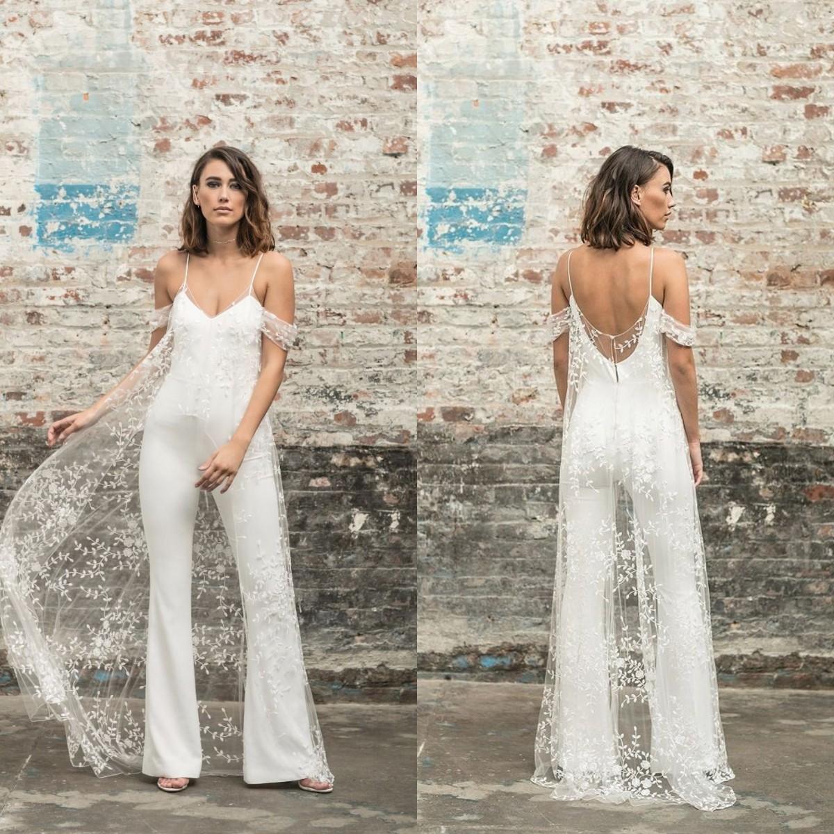 Summer Wedding Dress for Women Bridal Jumpsuit with Wrap robes de mariee Lace Boho Bride Dresses Backless Robe de Mariage