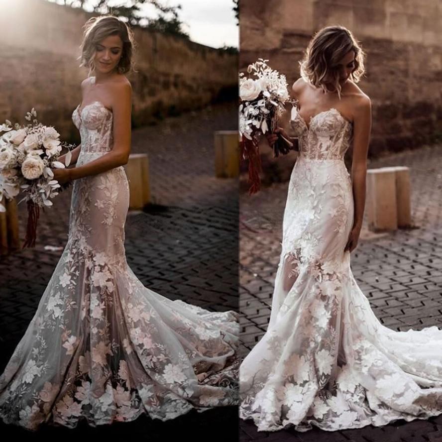 Modern Lace Mermaid Wedding Dresses Vestidos De Novia Sweetheart Neck Illusion Sleeveless Sexy Bridal Gowns Appliques