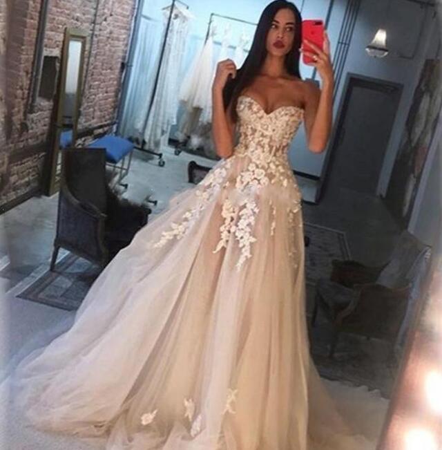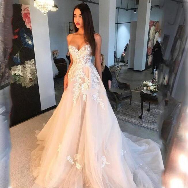 Lace Wedding Dress Charming Sweetheart Backless 3D Floral Appliqued Bridal Gowns A Line Bridal Gown Sweep Train Robe De Mariage