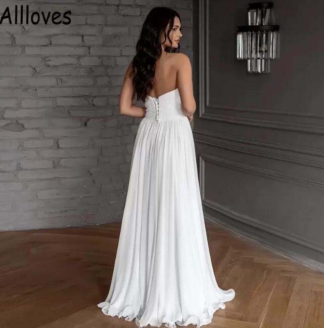 Sexy Sweetheart Neck Sleeveless Chiffon A-Line Wedding Dresses For Women 2022 Backless Pleats Bridal Gown Summer Beach Robes de Mariee Plus Size