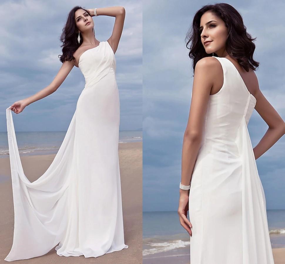 A-Line Wedding Dress Bride Gowns One Shoulder Chiffon Sweep Train Beach Plus Size Side-Draped Vestido De Noiva Robe Mariage