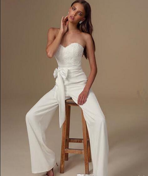 Sexy Jumpsuit Beach Wedding Dresses Sweetheart Lace Applique Chifon Boho Bridal Gowns Custom Made Bohemain Vestidos De Novia