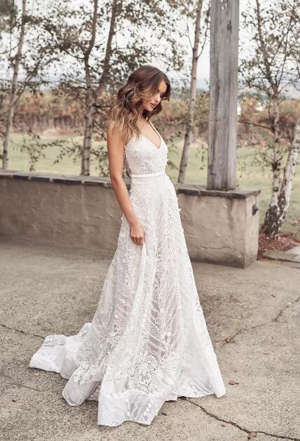 Bohemia Tassel Boho Wedding Dress Lace Backless Short Sleeve Tulle Beach Wedding Dresses Bridal Gowns