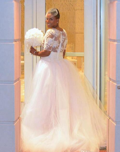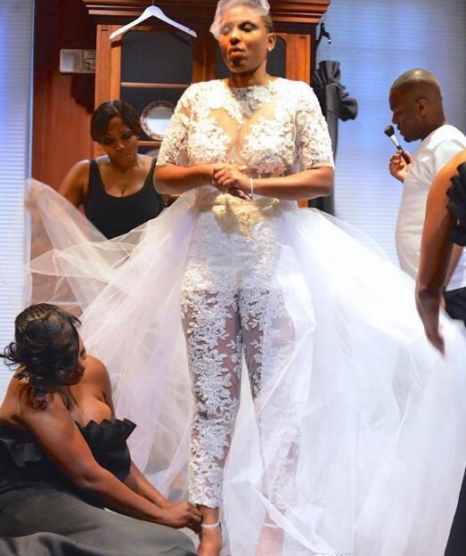 Jumpsuit Beach Wedding Dresses With Detachable Train See Through Lace Bodice Plus Size 2019 Nigerian African Bridal Gowns