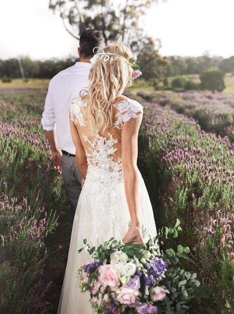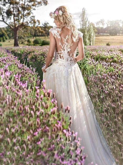 Vintage Bohemia Beach A Line Wedding Dresses Cap Sleeves Lace Appliqued Boho Bridal Gowns Plus Size Country Wedding Dress