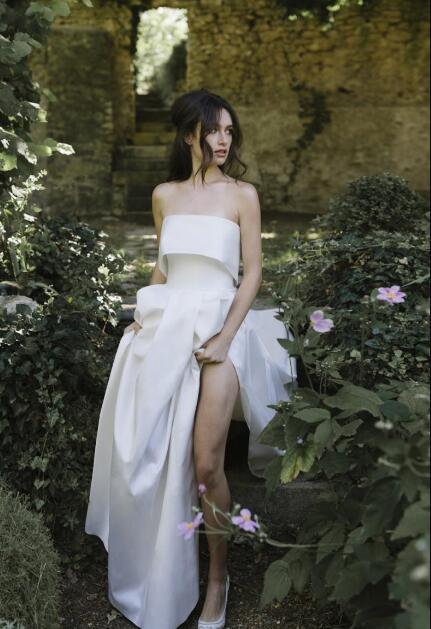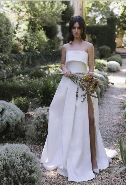 Split Satin Wedding Dresses Strapless Neckline Beach Boho Bridal Gowns robe de mariée Plus Size Wedding Dress