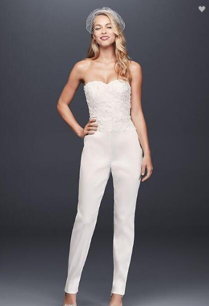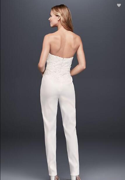 New Lace Jumpsuits Boho Wedding Dresses Sexy Illusion Bodice Satin Beach Bridal Gowns Simple Arabic vestidos de novia