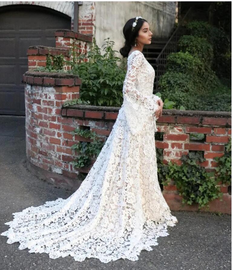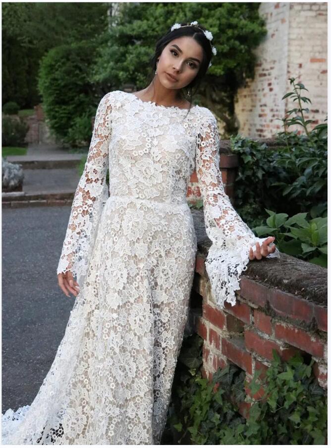 Lace Boho Wedding Dresses for Women Long Sleeve Backless A-Line Bohemian Bride Dress Beach Bridal Gowns Vestidos De Novia