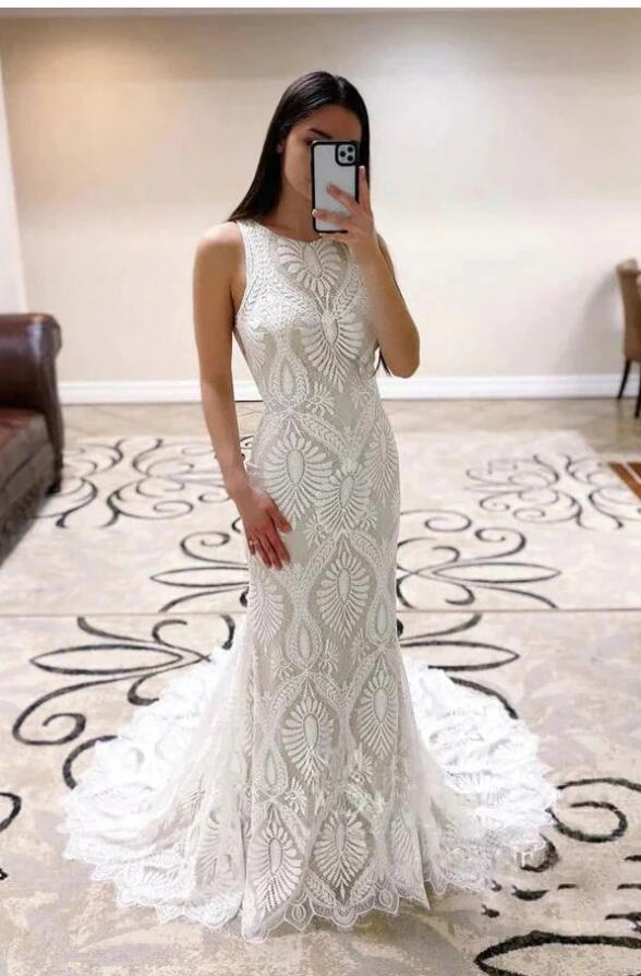 Round Neck Sexy Sleeveless Mermaid Boho Bride Dress Ivory Plus Size Women Brautkleid Robe De Mariee Country Bohemian